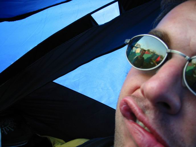bigitta and jay in tent, on beers