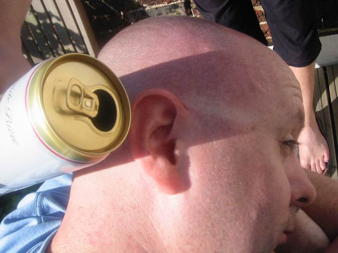 stripey gets a beer hed